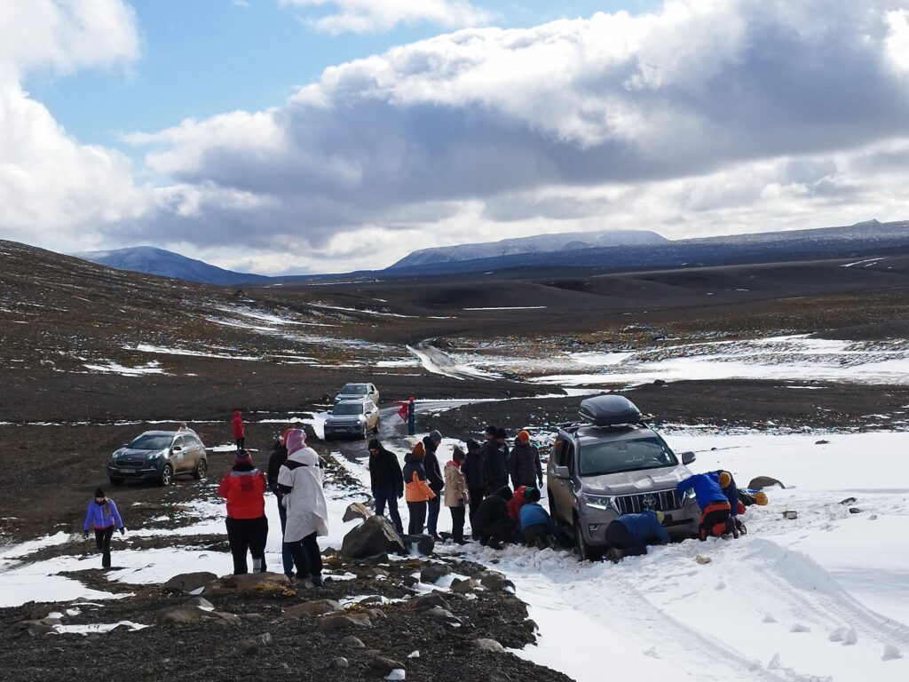 The foundation of our Iceland corporate trip was an exhilarating 4×4 expedition across the rugged interior of the island. Navigating gravel roads in mid-September is no small feat—harsh weather conditions, unexpected snowfall, and icy trails push both vehicles and drivers to their limits. But the reward? An untamed wilderness that felt like it existed just for us, with barely another soul in sight.