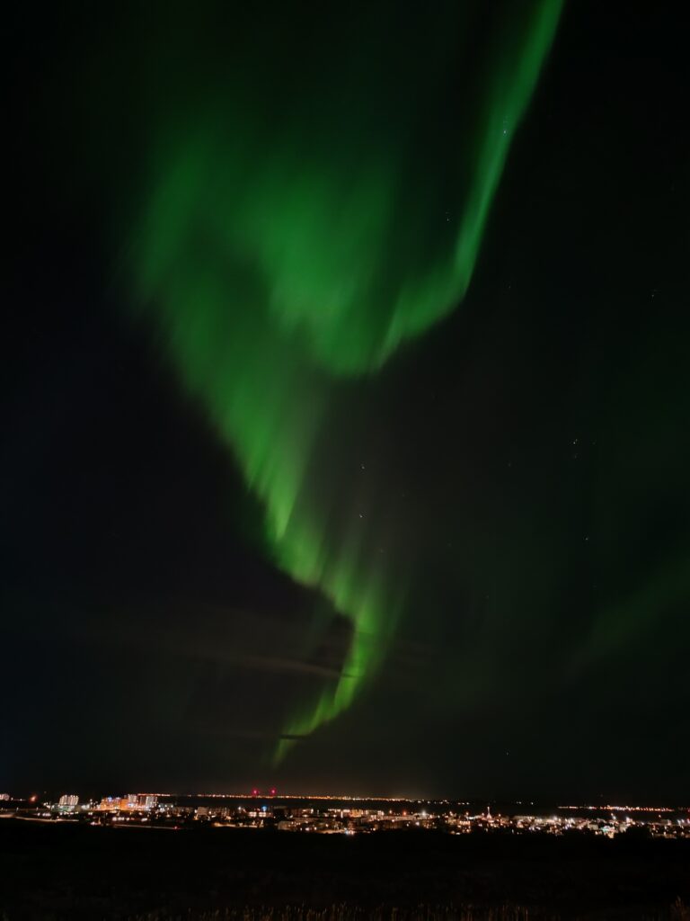Sometimes, nature’s generosity knows no bounds. While the aurora borealis is notoriously unpredictable, we were fortunate enough to witness its full brilliance on the last two nights of our journey. Even the locals were astonished by the intensity of the display—shimmering green and violet streaks painted the sky, turning our adventure into a true once-in-a-lifetime experience.